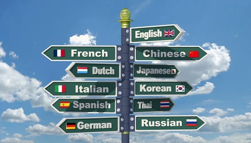 Out of these languages, which one utilizes a different writing system?
